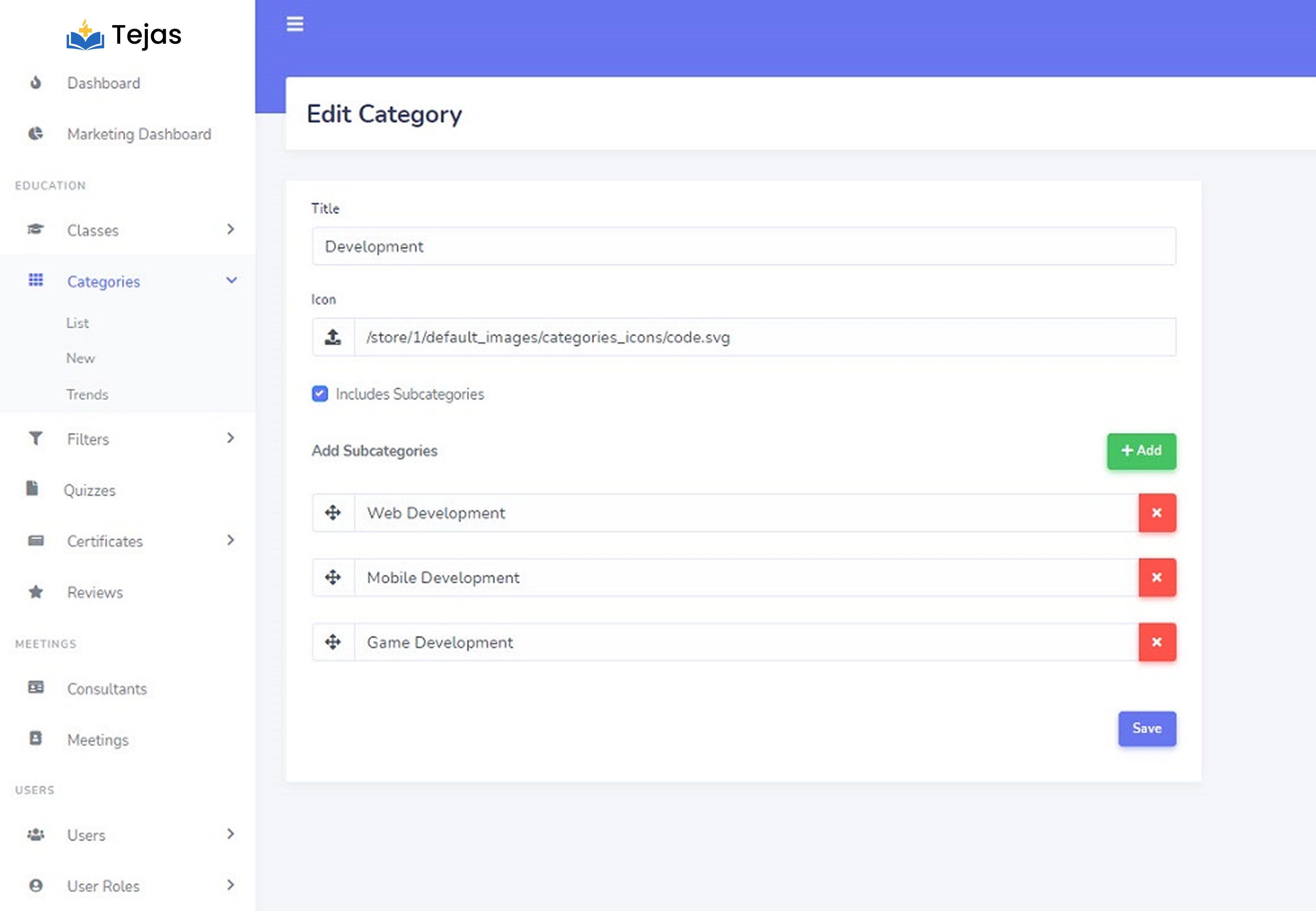Finally, click on the “Save” button to save the category.
