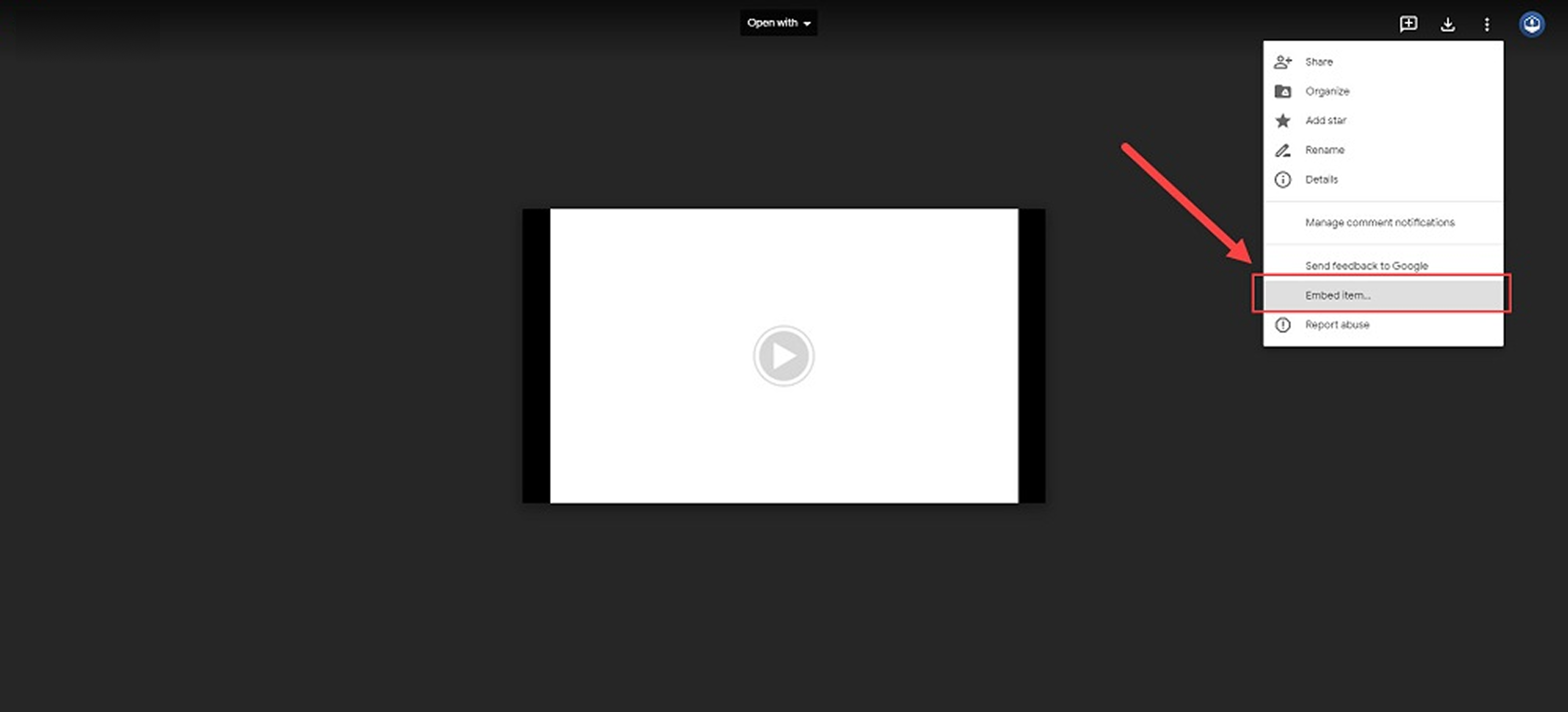 A new tab will open, then select embed and copy embed code in opened modal.