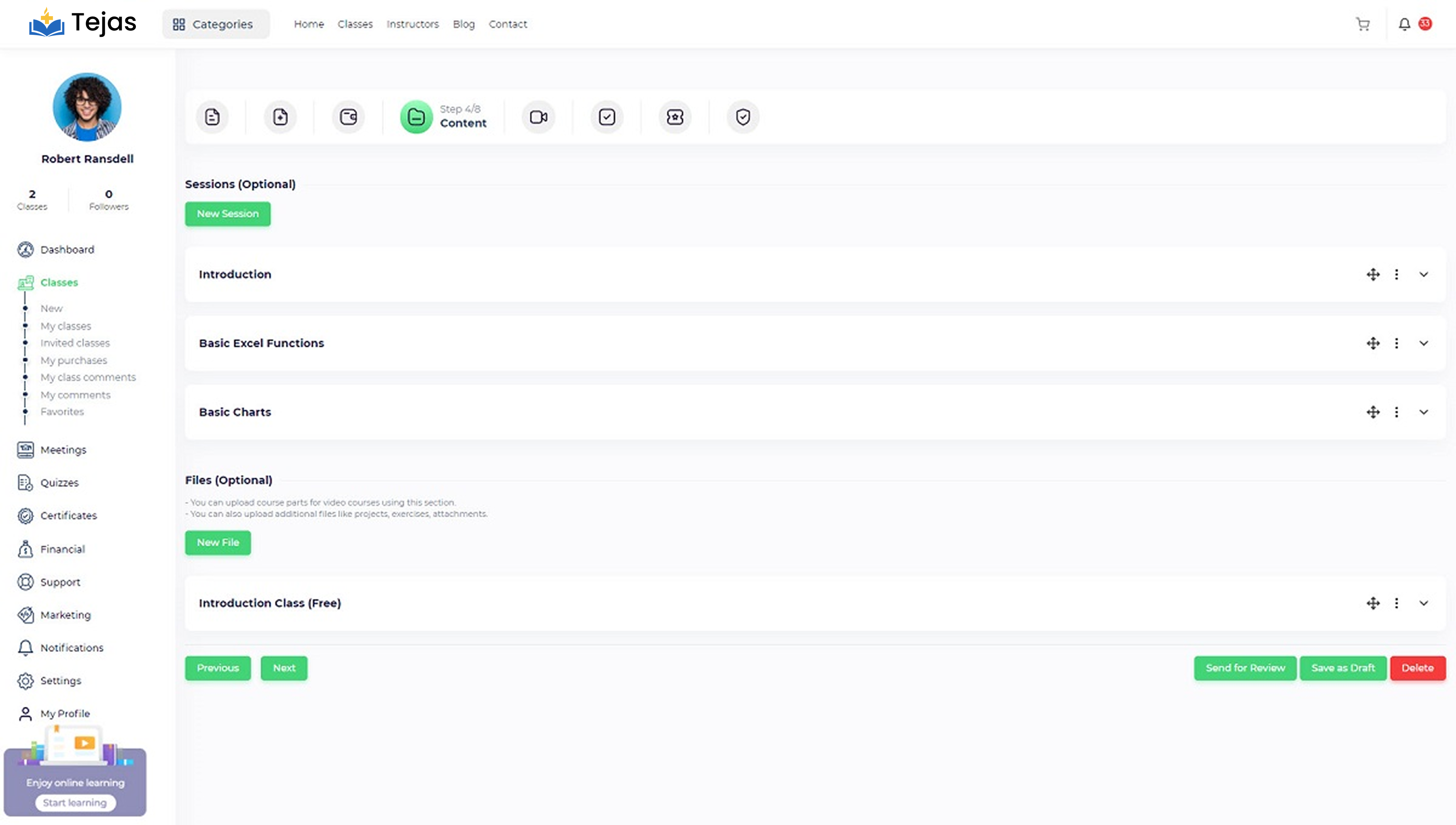 Description: The class description that will be displayed on the class page includes all of the information about the course educational material, instructor, and other related information that will motivate viewers to enroll in the course. We suggest writing at least 300 words for this page because it is one of the most important SEO requirements.